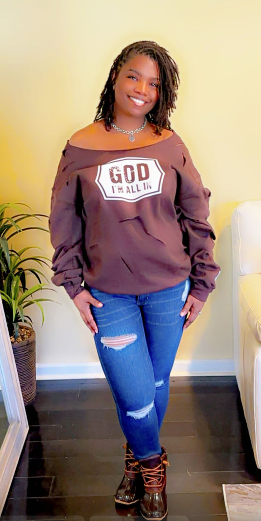 Chocolate Brown off the shoulder cut up sweatshirt